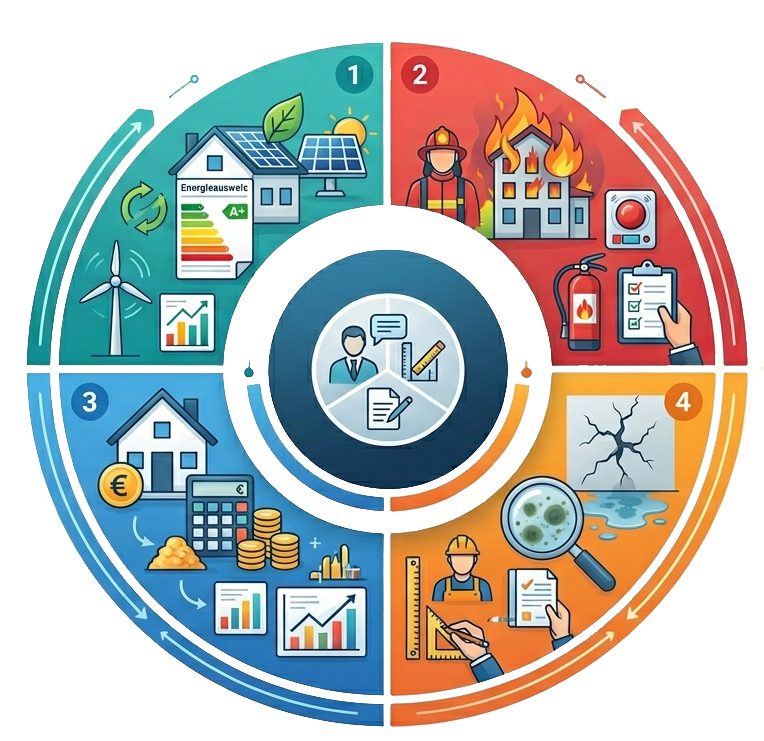 Als Gutachter für Energieberatung, Brandschutz und Wertermittlung beurteilen und bewerten wir Ihre Immobilie nach den neusten Kriterien